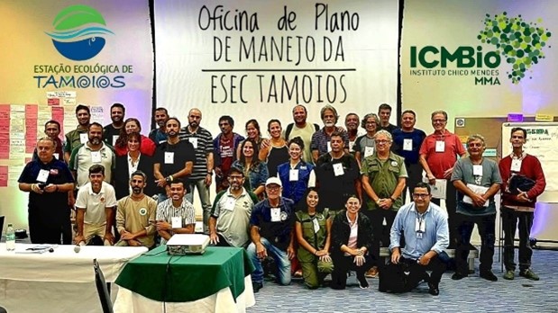 Na semana de 23 a 27 de outubro de 2023 foi realizada a Oficina de Planejamento para a revisão do plano de manejo da Estação Ecológica de Tamoios no Hotel do Bosque, Angra dos Reis/RJ. Durante a intensa semana de trabalho em regime de imersão, a Coordenação de Plano de Manejo (COMAN) e servidores da UC discutiram o novo plano de manejo da ESEC Tamoios com 50 participantes representando cerca de 30 instituições que atuam na baía da Ilha Grande e comunidades usuárias dos recursos protegidos pela unidade.