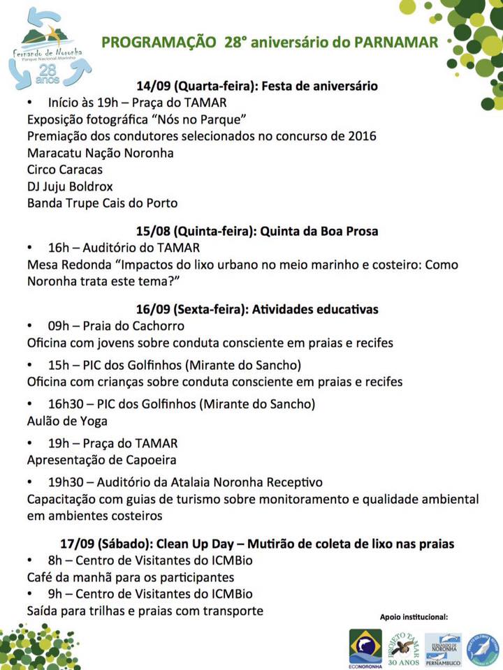 Estão previstos shows musicais, palestras e debates sobre a conservação do aquipélago e até um dia inteiro dedicado a mutirão de limpeza das praias.