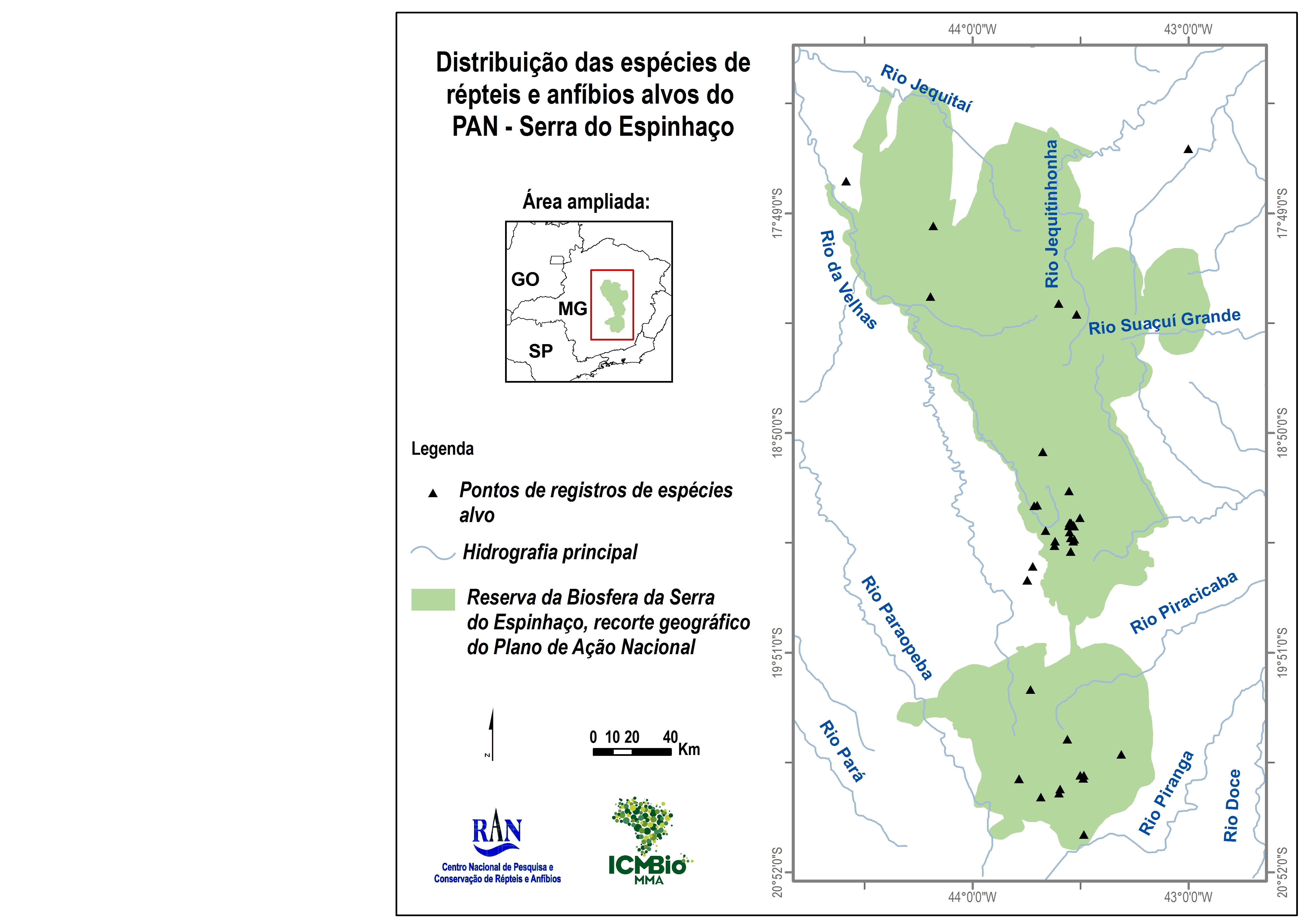 O Plano visa aumentar o conhecimento sobre as espécies-alvo e implementar medidas que favoreçam sua conservação bem como a de seus hábitats, num prazo de cinco anos. Ele é orientado por recorte geográfico, tendo seus limites iguais aos da Reserva da Biosfera da Serra do Espinhaço (RBSE), com aproximadamente 31.814 Km.
