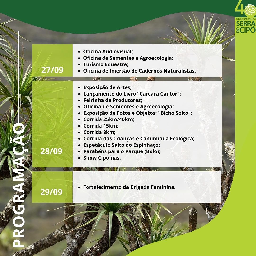 O Parque Nacional da Serra do Cipó está comemorando 40 anos de história e, para celebrar essa data especial, o Instituto Chico Mendes preparou uma semana repleta de atividades.