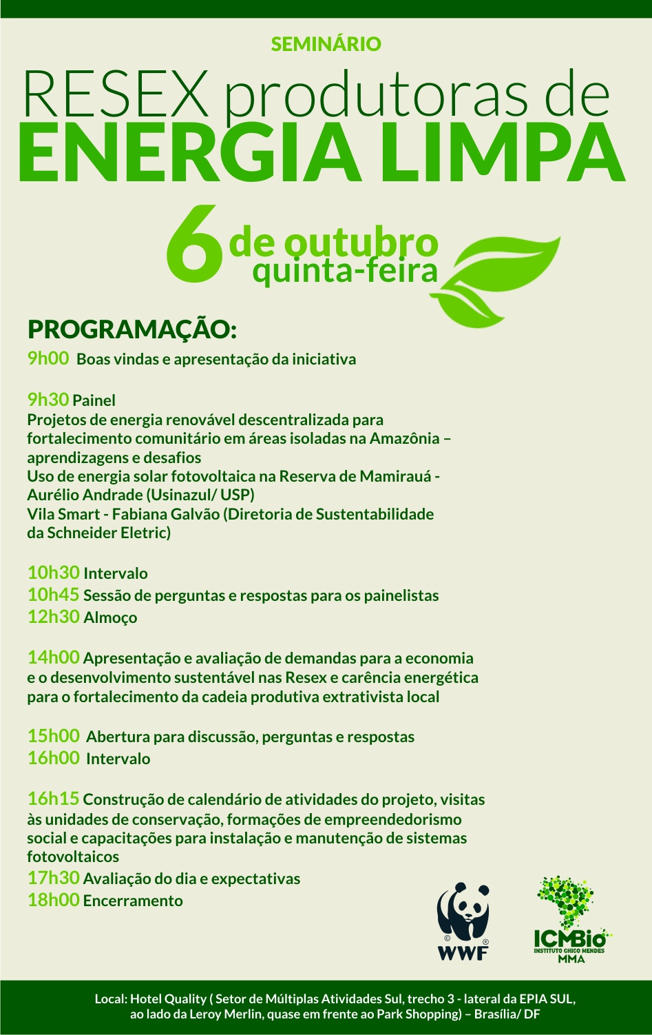 Brasília (20/10/2016) – O Instituto Chico Mendes de Conservação da Biodiversidade (ICMBio) e a ONG ambiental WWF Brasil acabam de promover, em Brasília, o seminário “Reservas Extrativistas produtoras de energia limpa”.