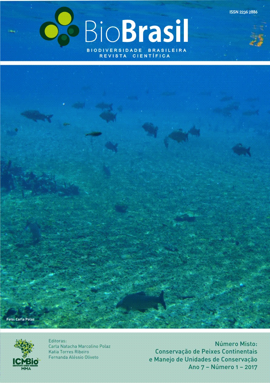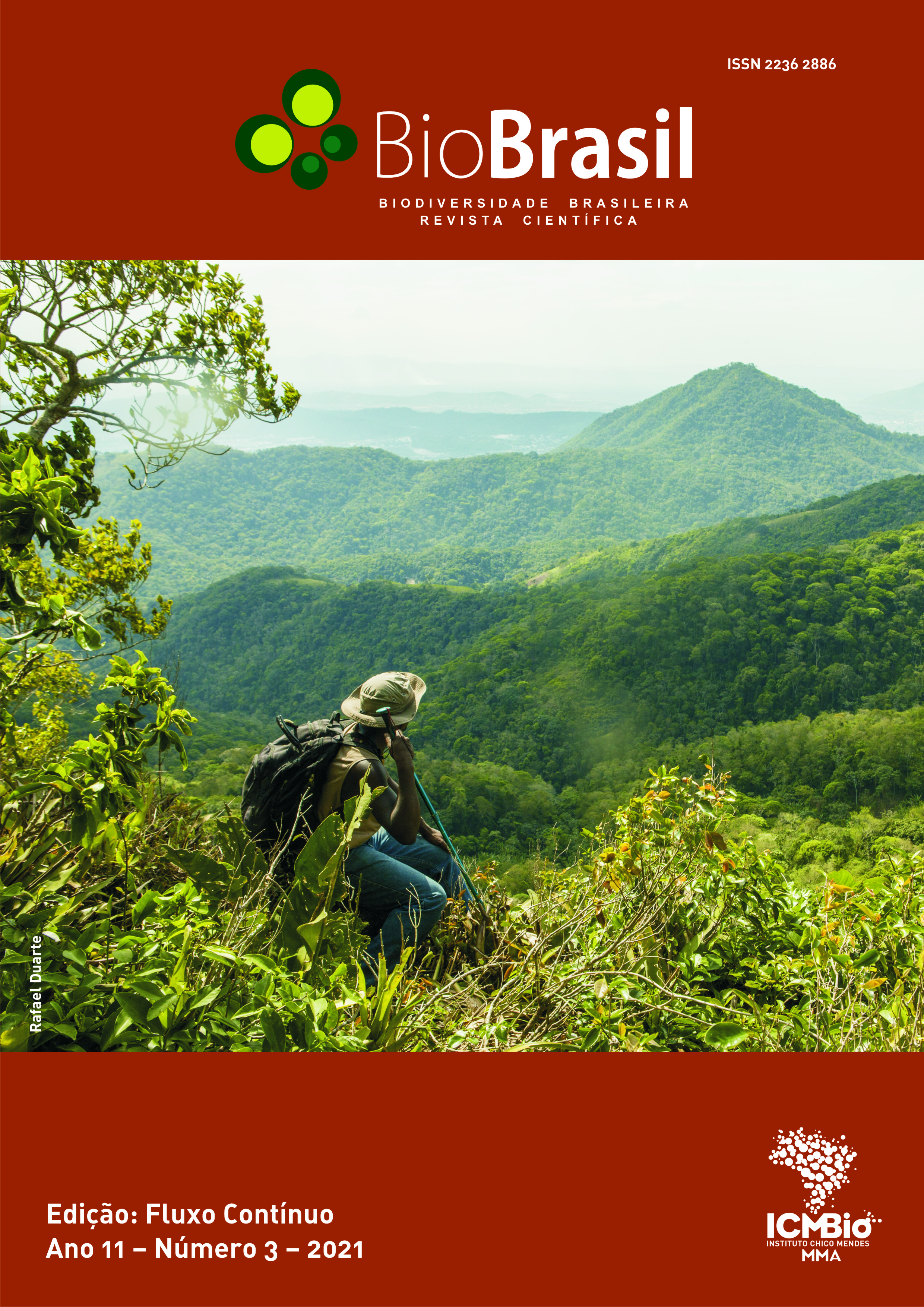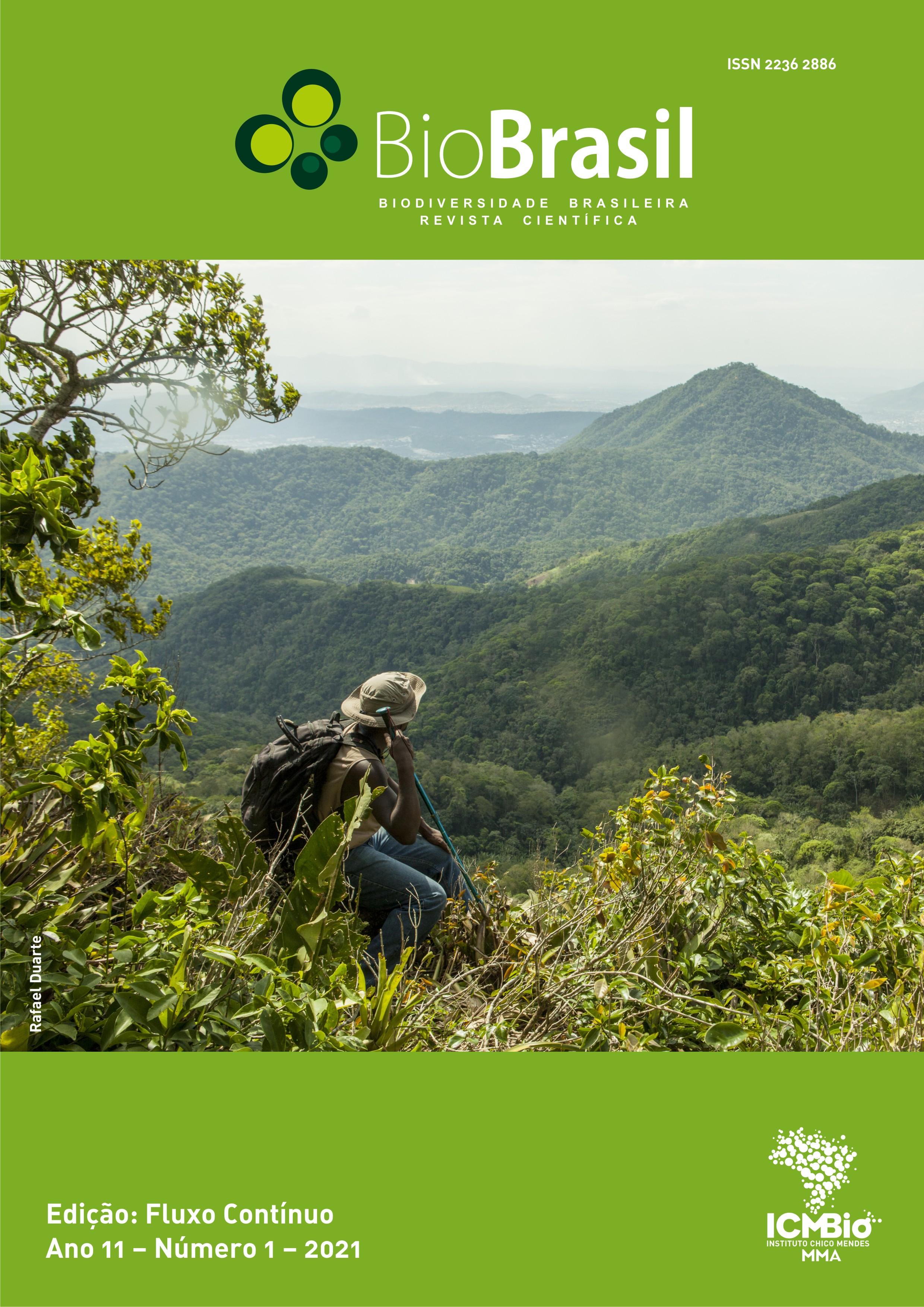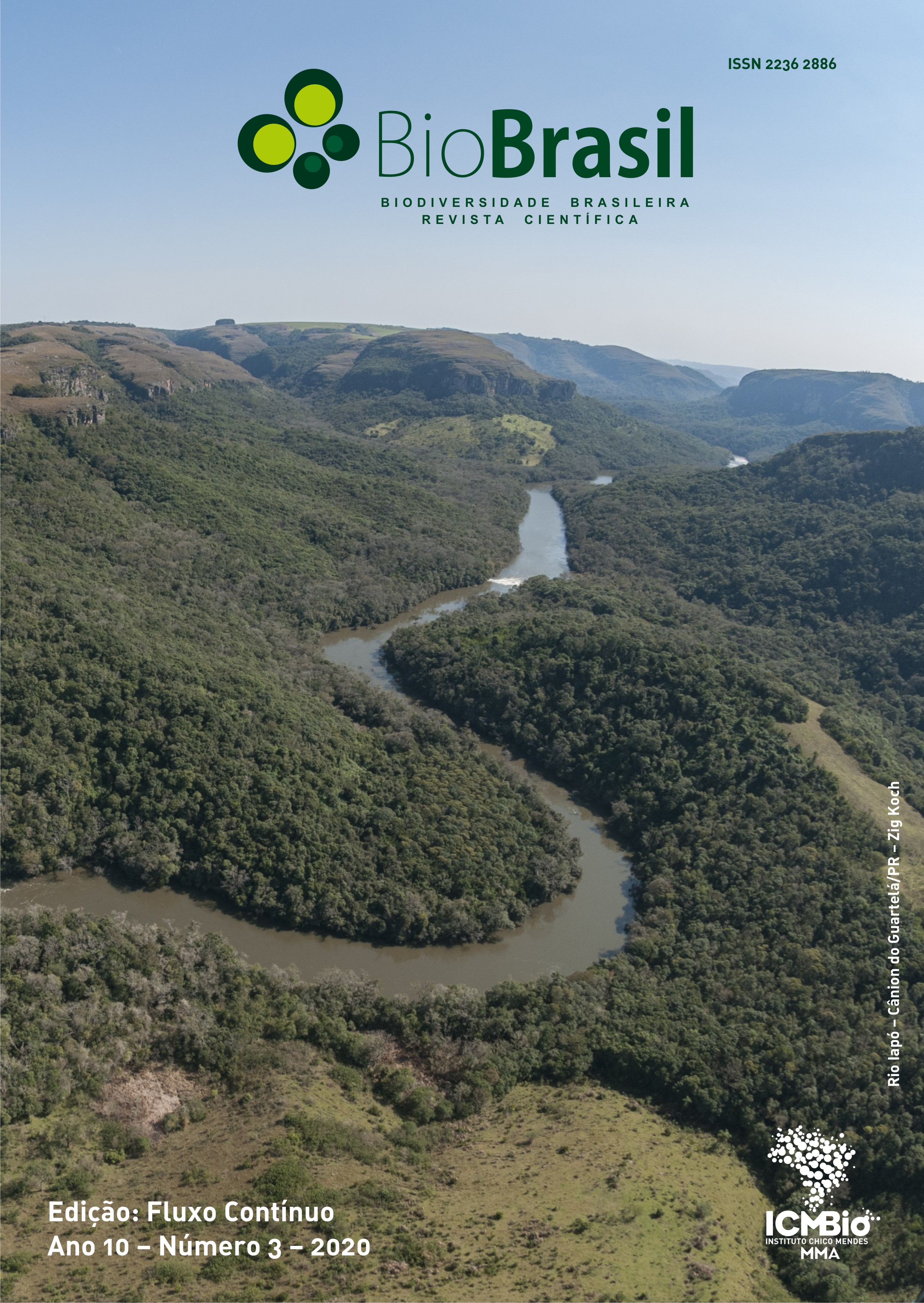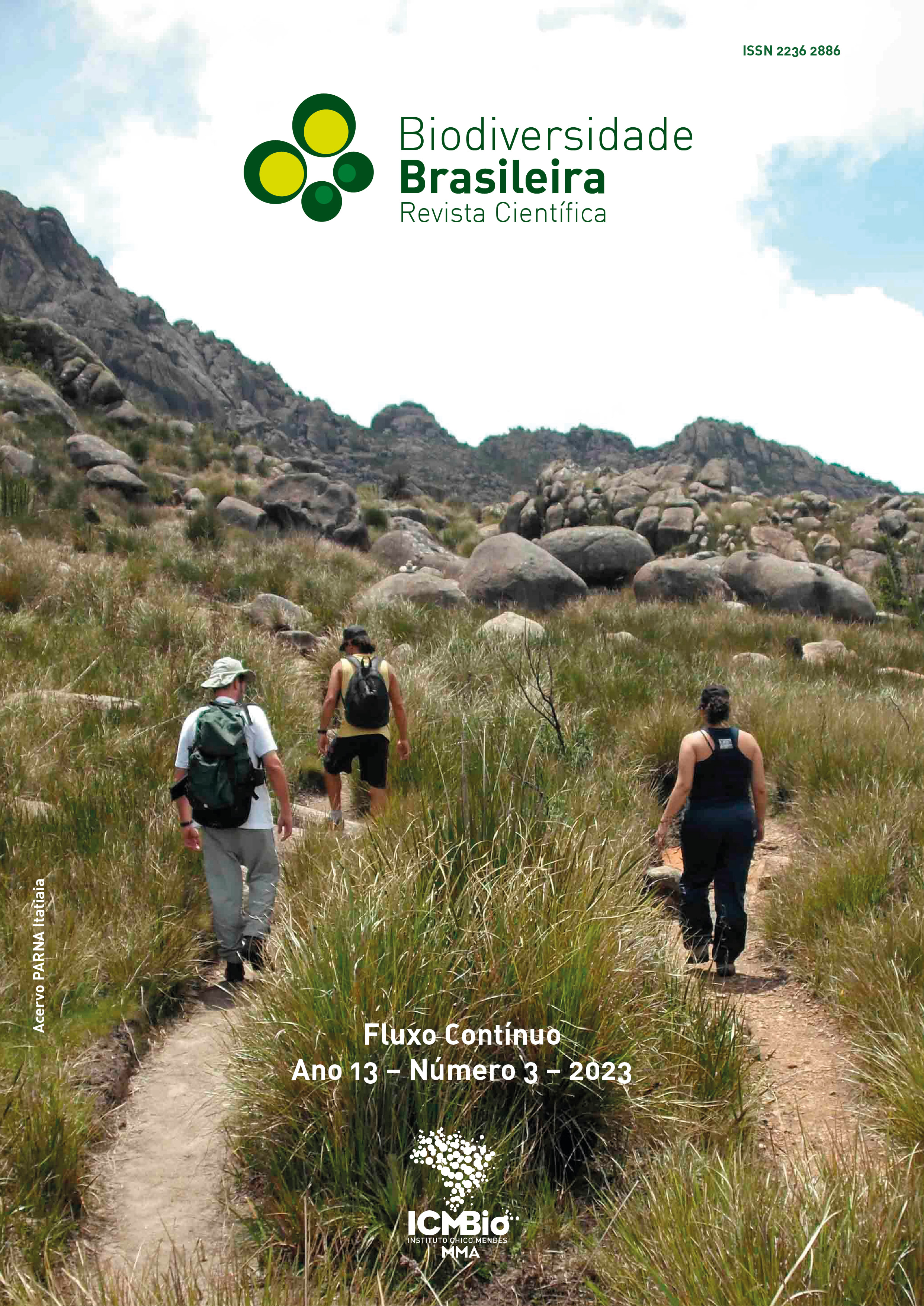 Biodiversidade Brasileira é uma publicação eletrônica científica do Instituto Chico Mendes de Conservação da Biodiversidade (ICMBio) que tem como objetivo fomentar a discussão e a disseminação de experiências em conservação e manejo, com foco em unidades de conservação e espécies ameaçadas. Trata de questões contemporâneas complexas, relacionadas a um amplo espectro de situações e contextos, cuja compreensão requer o envolvimento de diversas áreas do conhecimento. - ISSN 2236-2886 Qualis B4