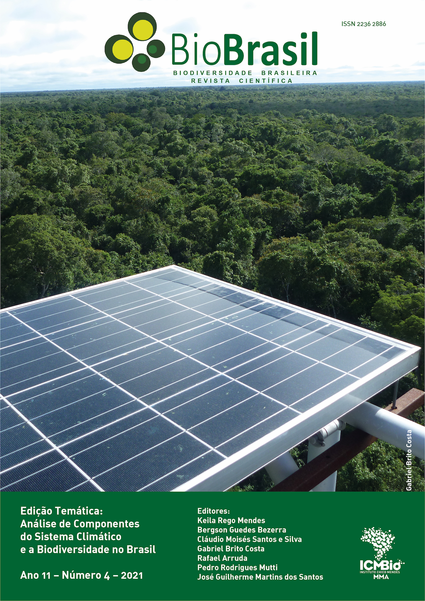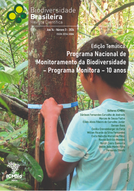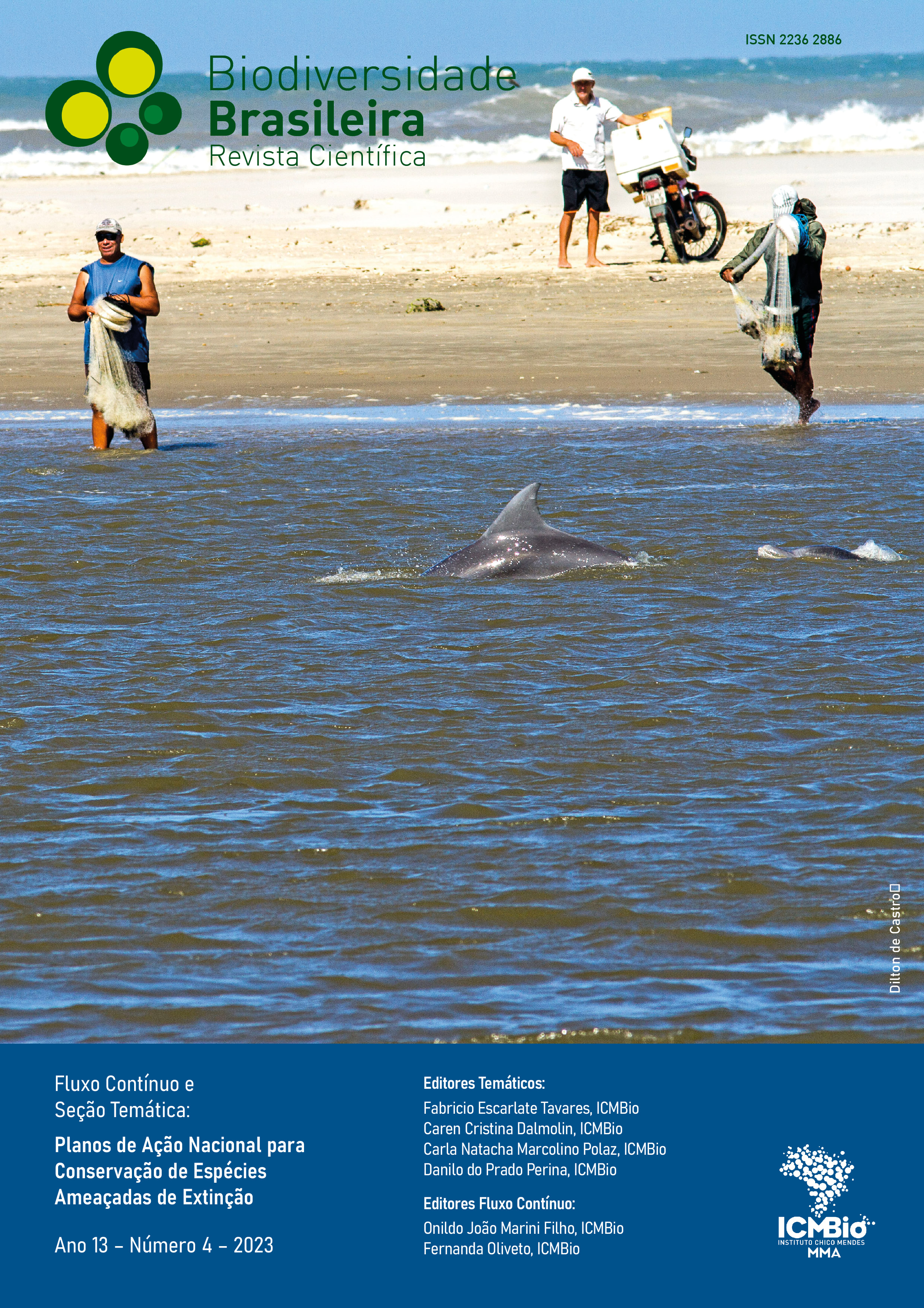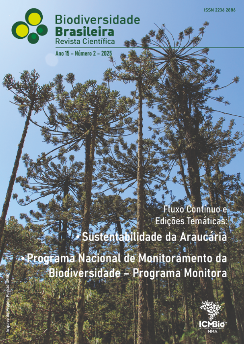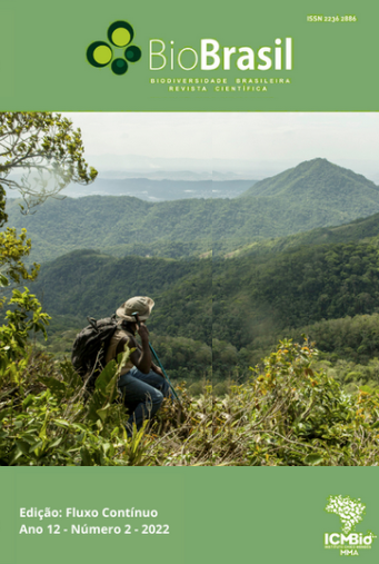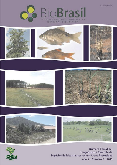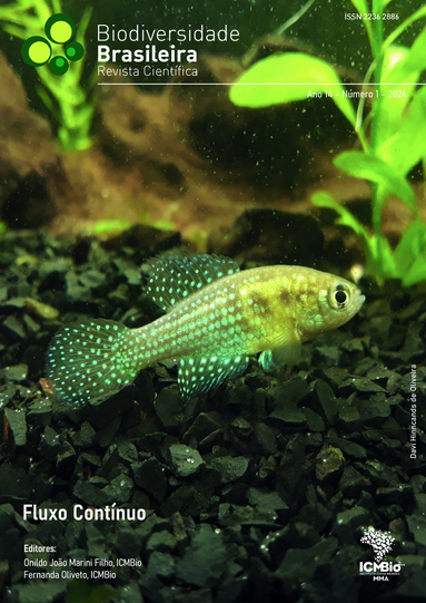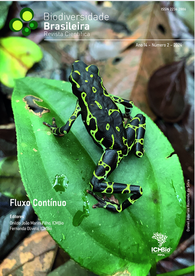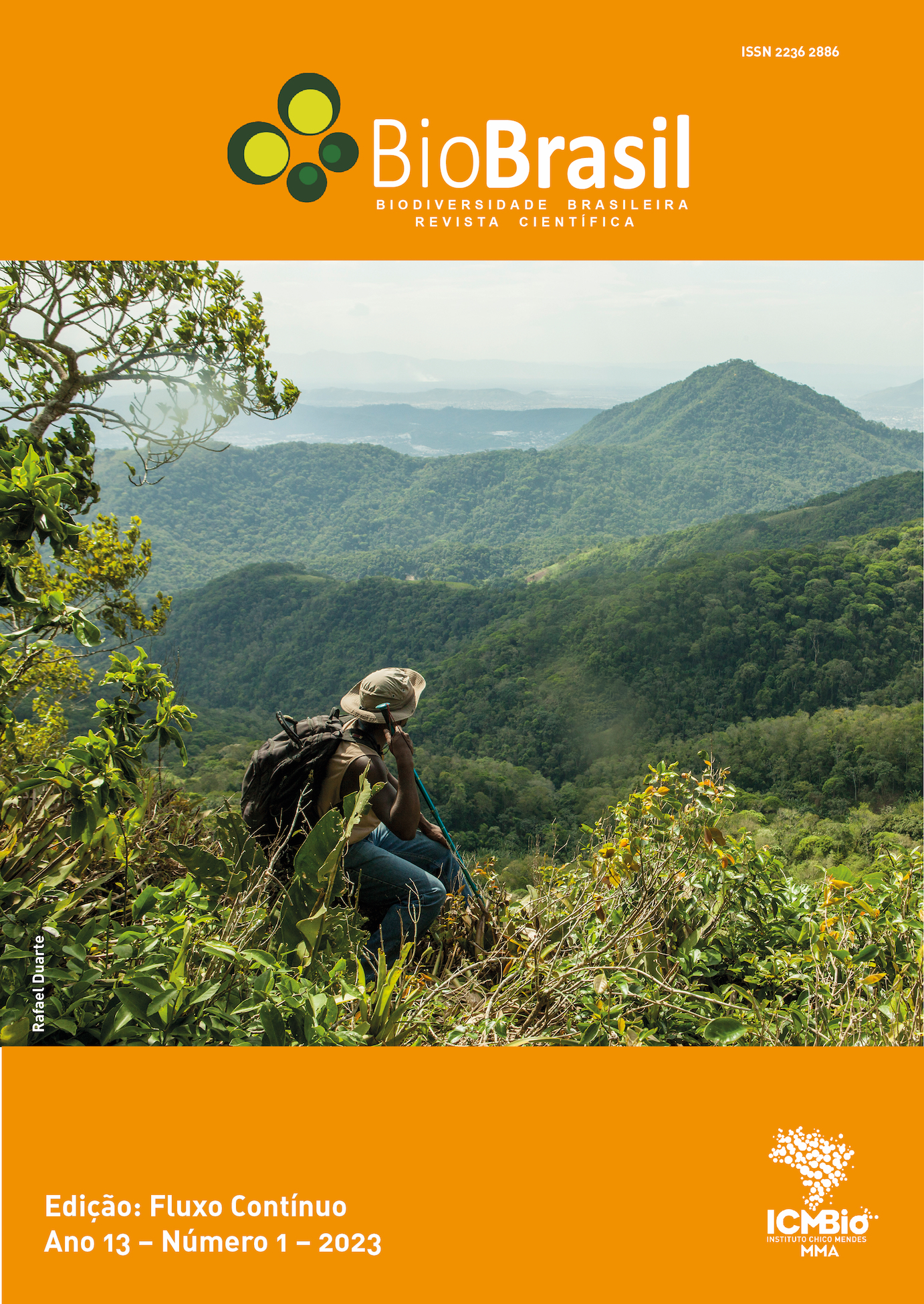 Biodiversidade Brasileira é uma publicação eletrônica científica do Instituto Chico Mendes de Conservação da Biodiversidade (ICMBio) que tem como objetivo fomentar a discussão e a disseminação de experiências em conservação e manejo, com foco em unidades de conservação e espécies ameaçadas. Trata de questões contemporâneas complexas, relacionadas a um amplo espectro de situações e contextos, cuja compreensão requer o envolvimento de diversas áreas do conhecimento. - ISSN 2236-2886 Qualis B4