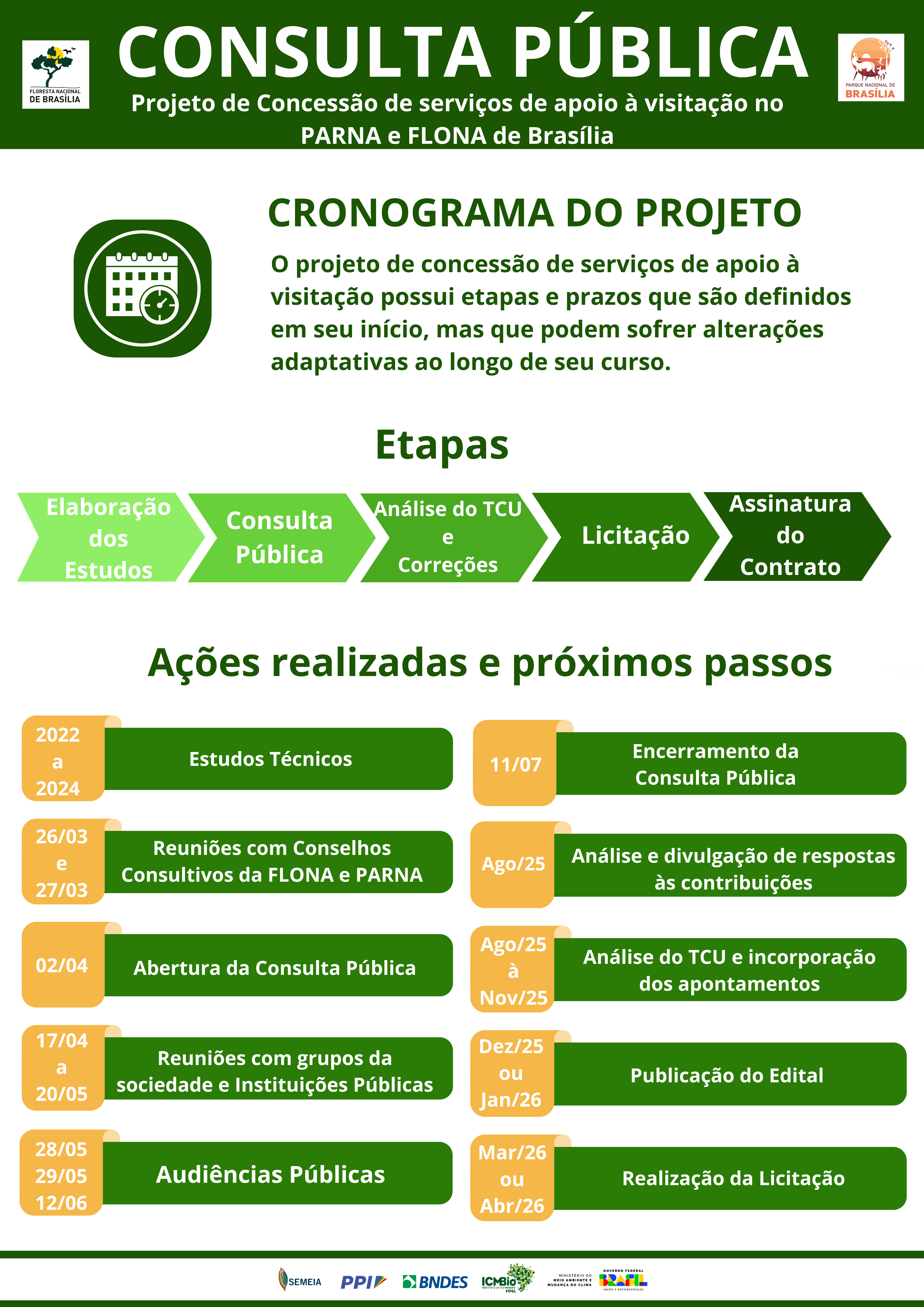 Cronograma do Projeto de Concessão de serviços de apoio à visitação