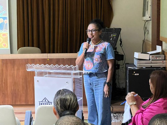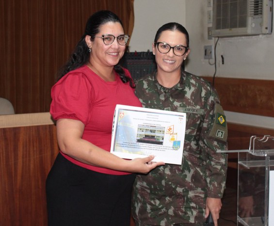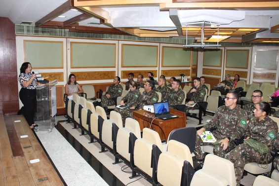 Di retora do IEC, Lívia Caricio, fala aos militares da ESFCEx