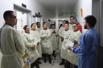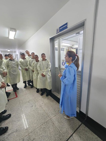 Os militares foram distribuídos em dois grupos menores. Na Seção de Virologia, foram recebidos pelos pesquisadores