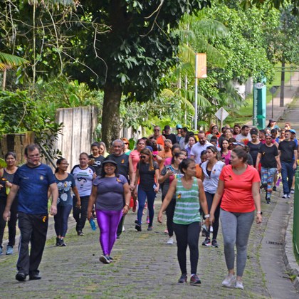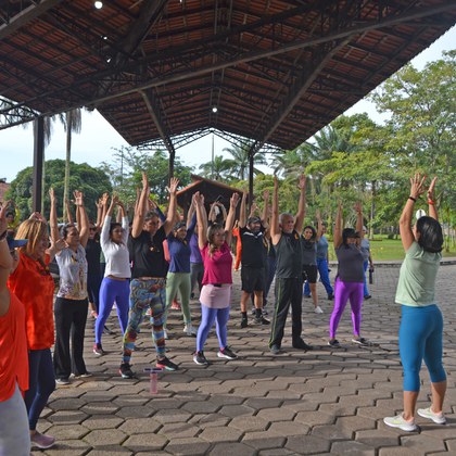 Antes da caminhada, que envolveu o percurso do portão de entrada do IEC até o Auditório Central do CENP, os servidores participaram de uma sessão de alongamento sob o comando de Potira Silva, bióloga e Técnica em Pesquisa e Investigação Biomédica, que trabalha no Setor de Manejo de Primatas.