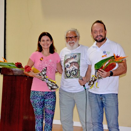 A Dra. Aline Imbeloni, diretora do CENP, também parabenizou as mulheres presentes. Ela e a Dra. Lívia foram homenageadas pelo médico veterinário do CENP, Dr. José Augusto Muniz, com a entrega de um ramo de flores.
