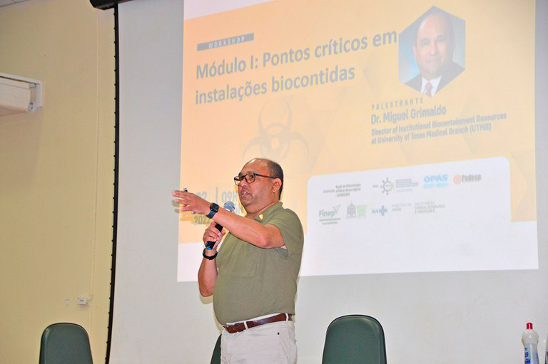 No último dia 22 de junho, pesquisadores e técnicos do Instituto Evandro Chagas participaram do Workshop “Gestão em ambiente de Alta Contenção”, ministrado pelo Diretor de Recursos Institucionais de Biocontenção da Universidade de Medicina do Texas, Miguel Grimaldo. O objetivo da atividade diz respeito à ampliação do conhecimento técnico/científico para subsidiar as ações de diagnóstico, considerando as informações sistematizadas e padronizadas para o gerenciamento do risco em laboratórios NB3 e NBA3.