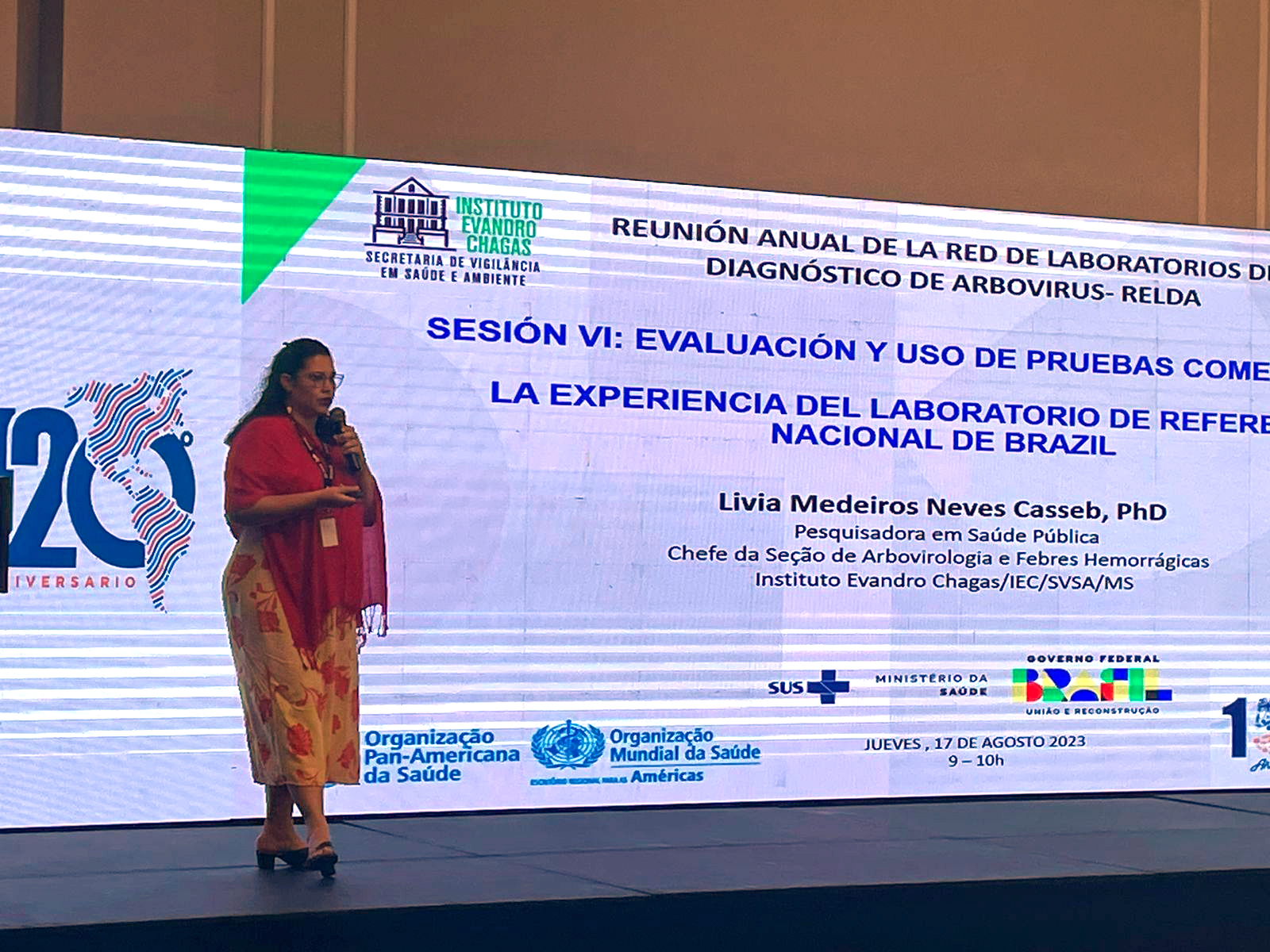 A diretora do Instituto Evandro Chagas (IEC), Lívia Carício, a chefe da Seção de Arbovirologia e Febres Hemorrágicas (SAARB/IEC), Lívia Casseb, e a pesquisadora em saúde pública da SAARB, Ana Cecilia Ribeiro Cruz, participaram, de 15 a 17 de agosto, da 14ª Reunião Anual da Rede de Laboratórios de Diagnóstico de Arbovírus das Américas (RELDA). O evento, organizado pela Organização Pan-Americana de Saúde (OPAS/OMS), aconteceu na cidade de Santo Domingo, na República Dominicana.