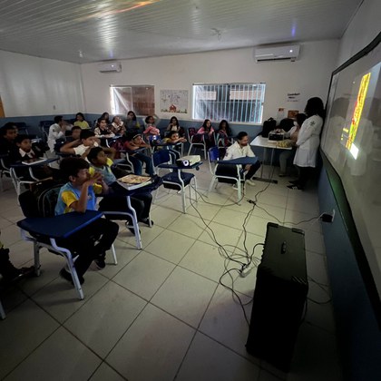 O Instituto Evandro Chagas (IEC) foi uma das instituições realizadoras da ação integrada em saúde “Ciência na Escola: insetos”, realizada na quinta-feira (2), na Escola Municipal de Ensino Fundamental Padre Gabriel Bulgarelli, em Ananindeua. A iniciativa levou informações técnico-científicas de forma lúdica a crianças e adolescentes e teve como objetivo apresentar insetos que transmitem doenças aos seres humanos e ao mesmo tempo divulgar ações de prevenção: o Aedes aegypti , mosquito vetor do vírus da dengue e de outras arboviroses, e os triatomíneos, conhecidos como barbeiros, que podem transmitir o Trypanosoma cruzi , agente causador da doença de Chagas.