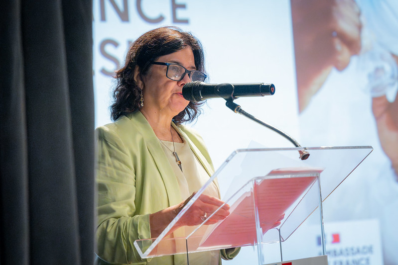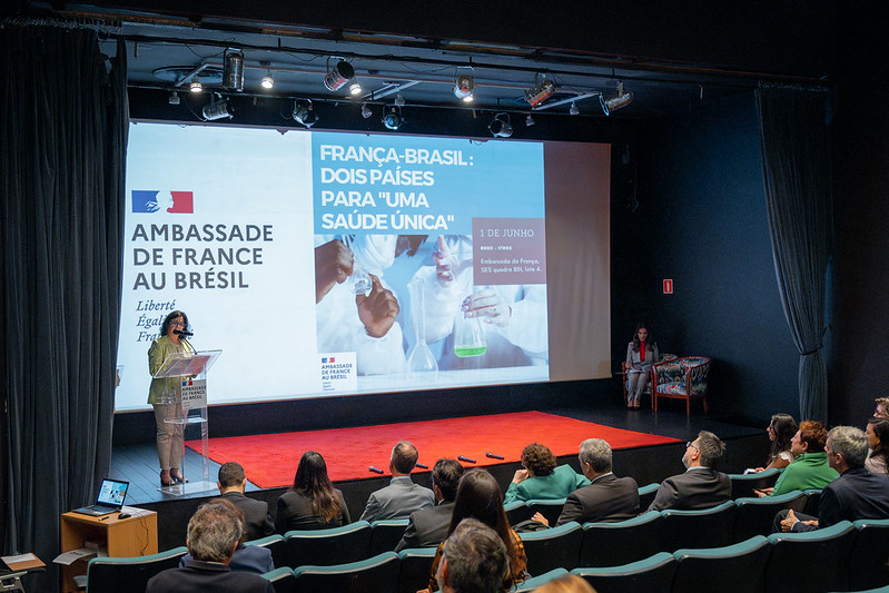 A chefe da Seção de Arbovirologia e Febres Hemorrágicas Virais e pesquisadora em saúde pública do Instituto Evandro Chagas (IEC/SVSA/MS), Lívia Casseb, representou a instituição no evento “França-Brasil: dois países para uma saúde única”. A iniciativa é da Embaixada da França no Brasil por meio do Serviço de Cooperação e Ação Cultural (SCAC). O objetivo do evento foi “dar visibilidade e valorizar as colaborações entre equipes de pesquisa francesas e brasileiras nos campos das ciências da vida e da saúde.” Os convidados foram recebidos pela embaixadora da França no Brasil, Brigitte Collet, e pelo adido de ciência e tecnologia da Embaixada da França no Brasil, Nacer Boubenna.