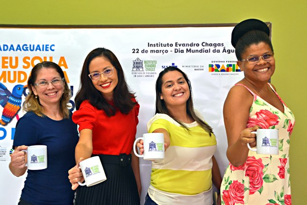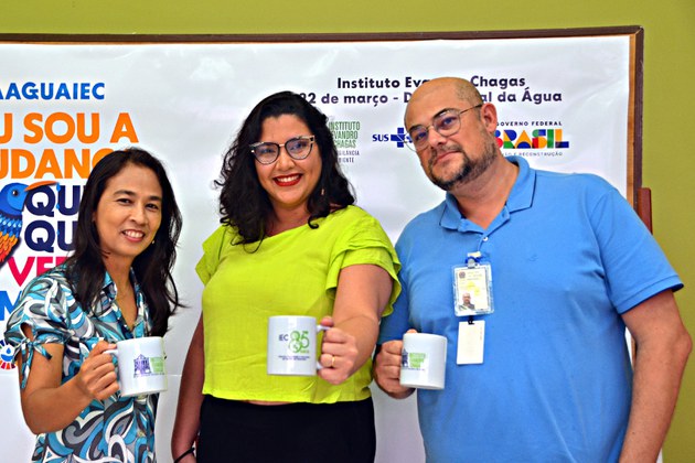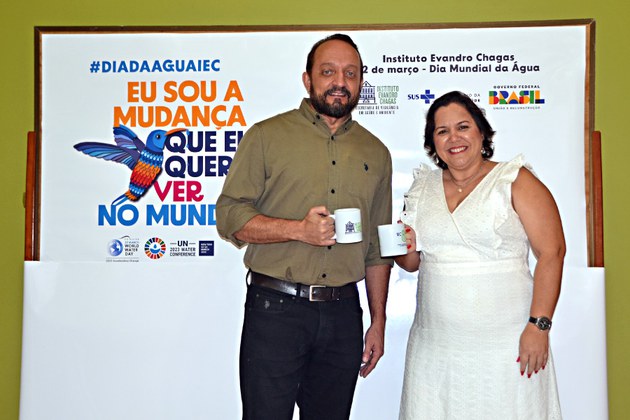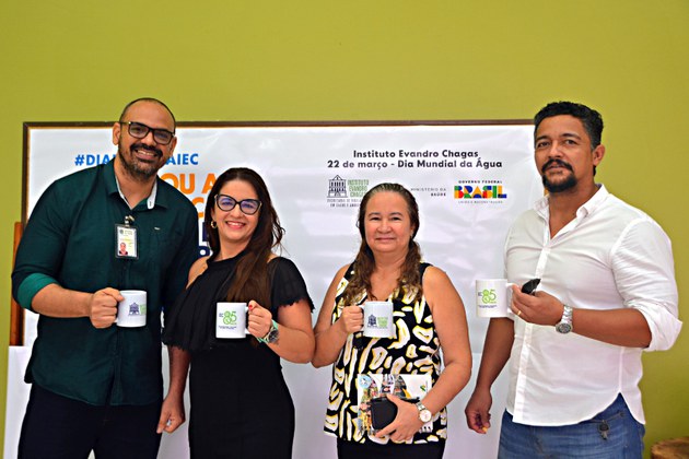 A programação foi realizada no mesmo dia em que se comemora o Dia Mundial da Água, por isso, na abertura do evento, foi exibido um vídeo sobre a importância da preservação e conservação da água e outro com servidores falando os 10 artigos da Declaração Universal dos Direitos da Água (clique aqui para assistir em nosso canal no YouTube) . Também foram distribuídas canecas com a logomarca do IEC na entrada do auditório, como forma de reforçar a necessidade de reduzir a utilização de copos descartáveis na instituição. Os servidores ainda tiraram fotos com a caneca em um painel institucional que foi montado no hall do auditório.