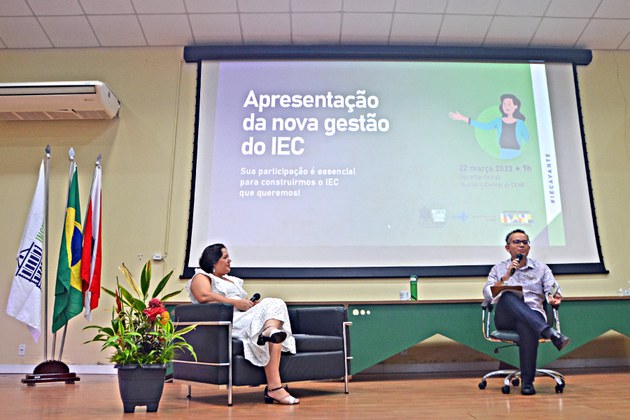 Após a exibição dos vídeos, a diretora do IEC, Lívia Carício Martins, agradeceu a presença de todos e falou sobre a importância da união para uma gestão mais forte e participativa. “A gente entende que a instituição tem muitos desafios. Alguns a gente vai começar a falar aqui e vai se debruçar um pouco sobre eles, mas eu também entendo que todos nós temos uma responsabilidade. Eu sempre falo que me sinto responsável por fazer o melhor, assim como as pessoas que vieram antes de mim fizeram por essa instituição. Eu me sinto representando os gestores que passaram, colegas que dedicaram uma vida a este Instituto e hoje já não estão mais aqui porque se aposentaram, mas que a gente vê que ainda ficou um laço de amor e de preocupação com a instituição. Então, é nesse sentido que hoje a gente vai apresentar a nova gestão, fazendo um convite a todos vocês para que juntos possamos construir o IEC que queremos”, afirmou.