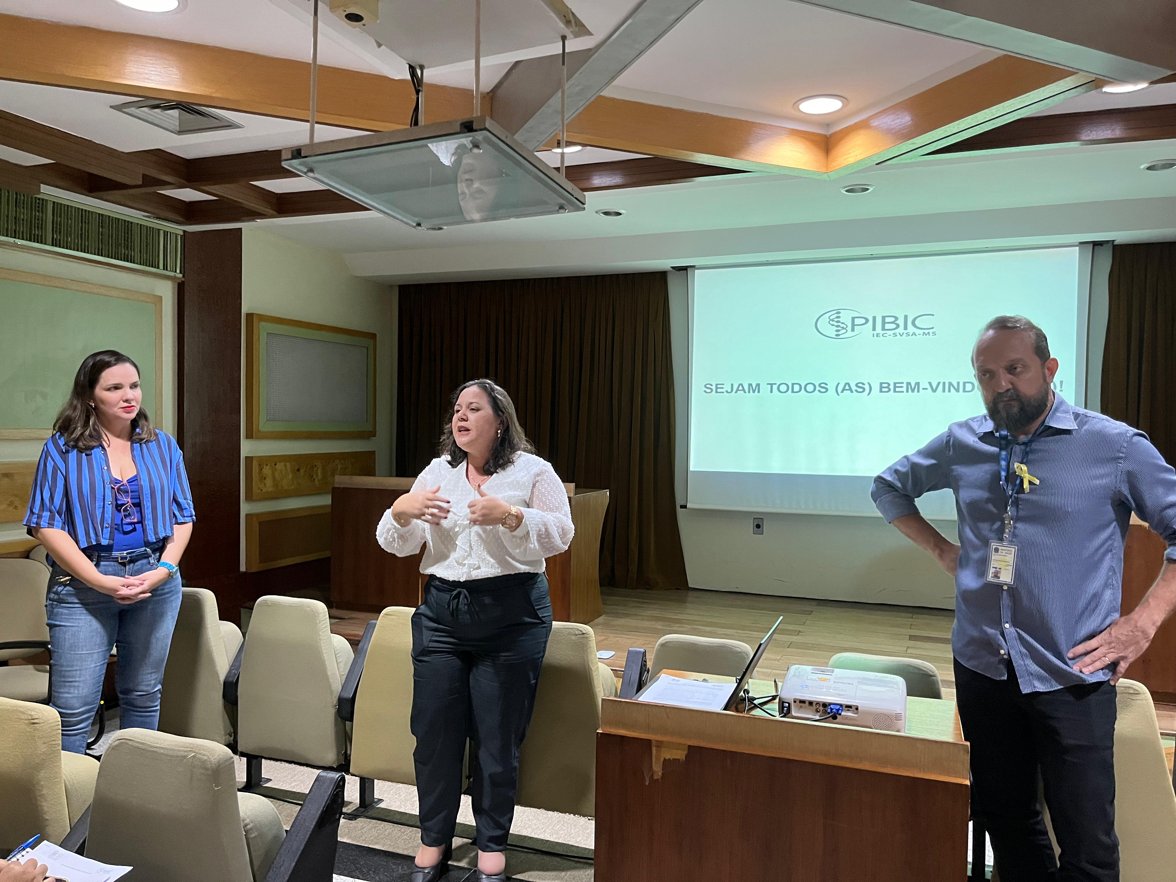 Além da diretora, estiveram presentes: o Diretor Substituto e Chefe da Seção de Meio Ambiente do IEC (SEAMB), Bruno Carneiro, que destacou a importância dos bolsistas aproveitarem o conhecimento dos pesquisadores mais experientes; as condutoras do PIBIC/IEC, Patricia Ramos e Liliane Carneiro, deram detalhes sobre como se dá a relação institucional com os alunos, os direitos e deveres dos bolsistas.