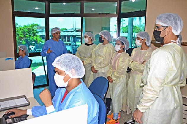 Nos dias 21 de junho e 25 de julho, alunos do curso de Biomedicina da Universidade Estadual do Pará (UEPA) fizeram visita técnica ao Instituto Evandro Chagas (IEC). Eles conheceram os laboratórios da Seção de Parasitologia (SAPAR), as instalações da Seção de Recebimento de Materiais Biológicos (SERMB) e assistiram ao vídeo institucional do IEC. O objetivo foi promover a integração entre teoria e prática no que se refere aos conhecimentos adquiridos pelos estudantes. A iniciativa teve apoio da atual Direção do IEC, que vem concentrando esforços na divulgação do conhecimento científico e na aproximação do IEC com a comunidade.