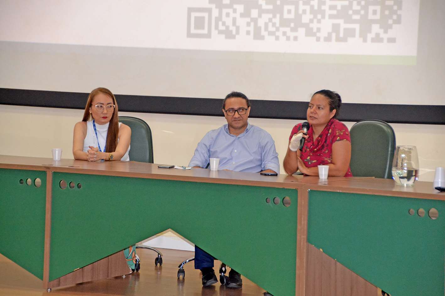 À tarde, a programação continuou com um painel apresentado pelo Chefe da Seção de Inovação, Tecnologia e Patentes (SEITP/IEC), Allen Leonardo Macedo; pela Chefe da Seção de Gestão da Biossegurança e Qualidade (SEBQ/IEC), Ananda Ramos; e pela Chefe da Seção de Recebimento de Materiais Biológicos (SERMB/IEC), Susana Mika Yahisa. Em seguida, houve a apresentação do representante da Chefia do Laboratório de Georreferenciamento (LABGEO/IEC), Clístenes Catete; da Chefe do Laboratório de Microscopia Eletrônica (SAHEP/SEMIE), Ana Paula Drummond; e, por fim, o painel apresentado pelo Chefe do Serviço de Gestão de Pessoas (SEGEP/IEC), João Batista Pereira.