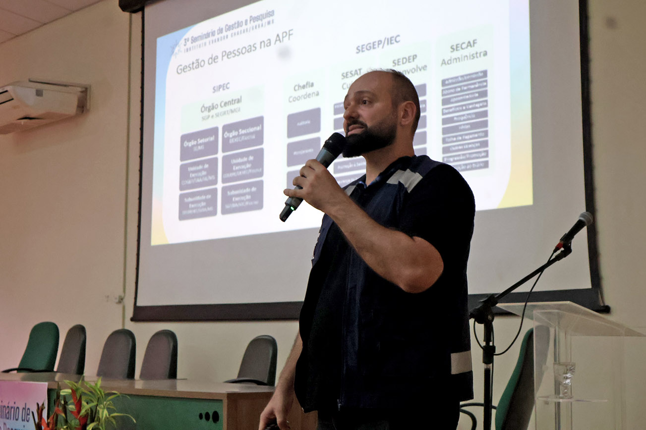 Uma das inovações deste ano foi a apresentação do resultado da Pesquisa de Avaliação Interna do Desempenho do IEC em 2023, feita pelo chefe da Seção de Comunicação e Memória Institucional (SECMI/IEC), Kelvin Souza. A pesquisa avaliou a satisfação da comunidade interna em relação à gestão das áreas administrativas e finalísticas, abordando temas como governança, planejamento estratégico e saúde do trabalhador.