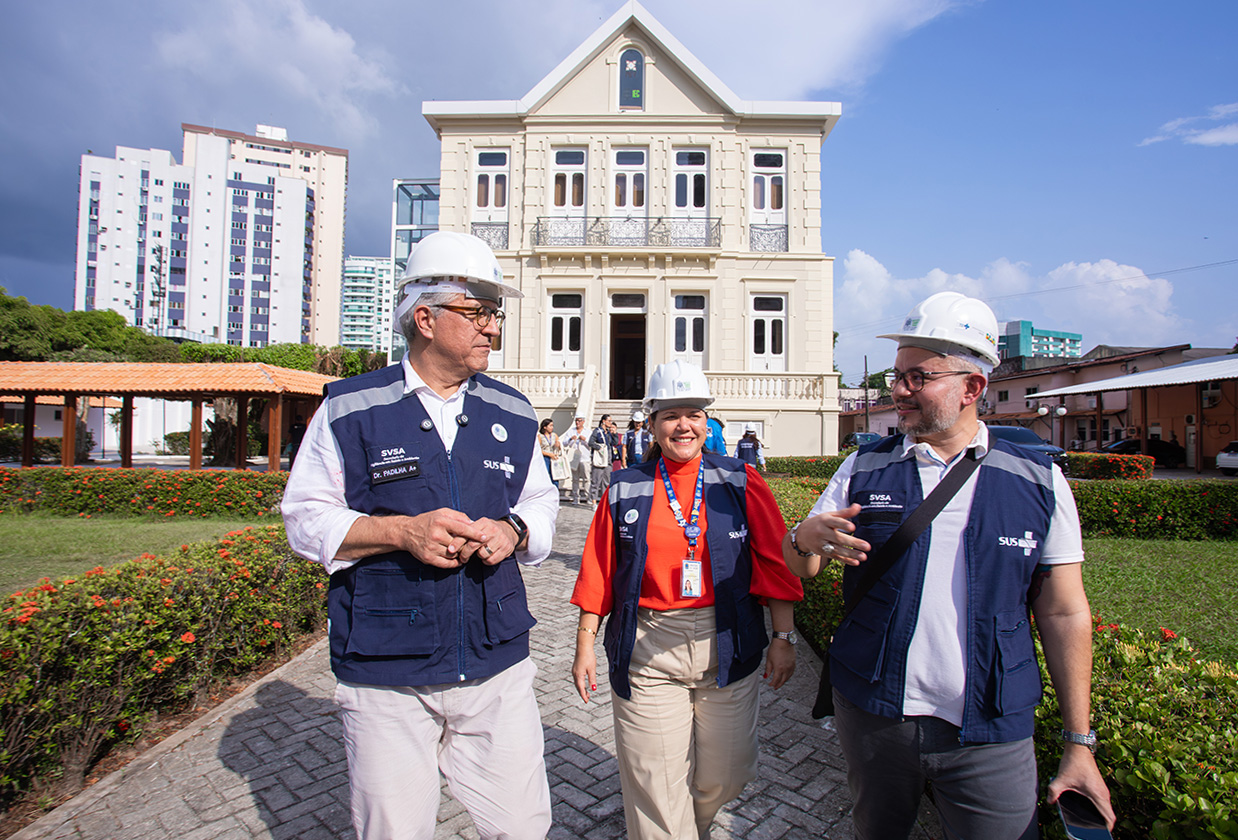 O Ministro da Saúde, Alexandre Padilha, visitou na sexta-feira, 3 de outubro, as obras do campus do Instituto Evandro Chagas (IEC/SVSA/MS), em Belém. Na chegada, foi recebido pela diretora da instituição, Lívia Caricio, que apresentou o andamento das construções e as perspectivas para a inauguração do Museu do IEC, que funcionará no casarão histórico.