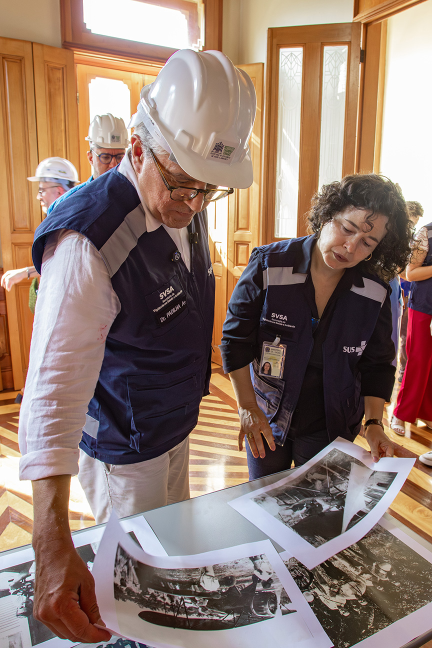 Durante a visita, o Ministro conversou com a engenheira responsável pela obra, Nilcyany Souza, que detalhou o estágio atual dos trabalhos e as etapas finais do projeto. Padilha também conversou com as servidoras do Museu do IEC, Clarissa Santos e Cláudia Santos. Elas deram detalhes sobre o acervo e as exposições que farão parte da nova estrutura museal.