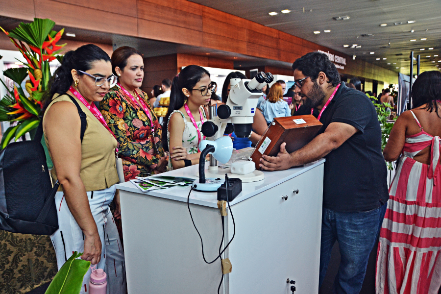 O estande do IEC atraiu a atenção dos visitantes, que puderam conhecer mais sobre as pesquisas, cursos e programas de pós-graduação do Instituto. Além disso, o pesquisador, Daniel Damiouns, da SEARB, expôs, no local, uma coleção das principais espécies de insetos (vetores) de importância epidemiológica da região amazônica, entre eles o “Aedes aegypti”, transmissor de doenças como dengue, chikungunya, febre amarela e zika; e o “Culicoides paraensis”, conhecido popularmente como maruim e que transmite o vírus do Oropouche. Quem visitou o espaço também pôde observar os mosquitos por meio do microscópio que foi disponibilizado no estande.