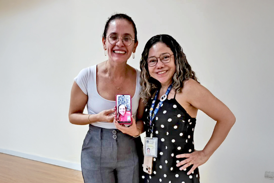 - Taciana Coelho e Patrícia Karla Ramos com a foto da vice-condutora do Programa, Liliane Carneiro, que participou do evento de forma virtual