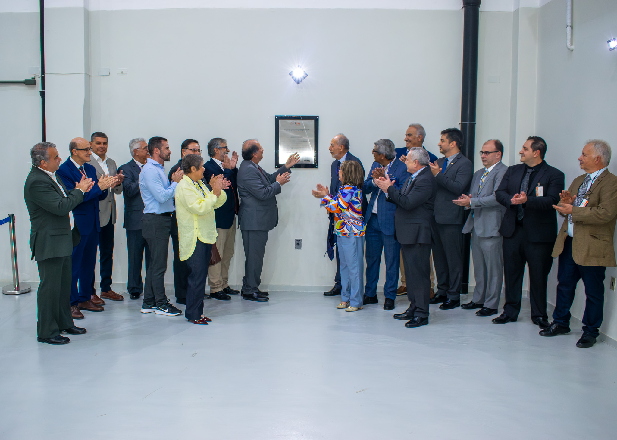 - Autoridades reunidas no salão do Reator Argonauta para o descerramento de placa da pedra fundamental do microrreator nuclear. Foto: Gledson Júnior.
