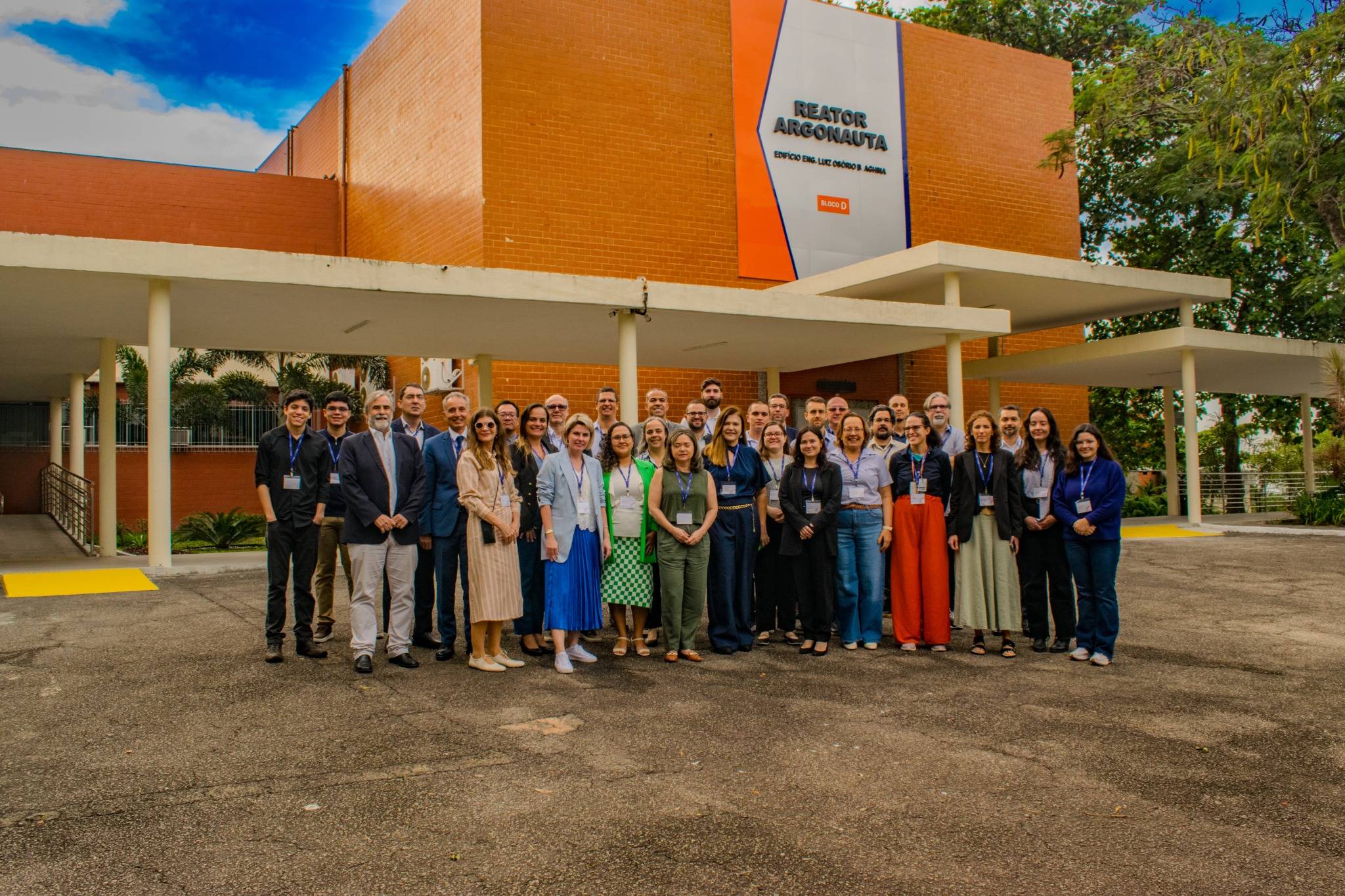 - Grupo de treinandos e professores reunidos em frente ao prédio do Reator Argonauta durante o curso NEMS da AIEA, em junho de 2025. Foto: Gledson Júnior.