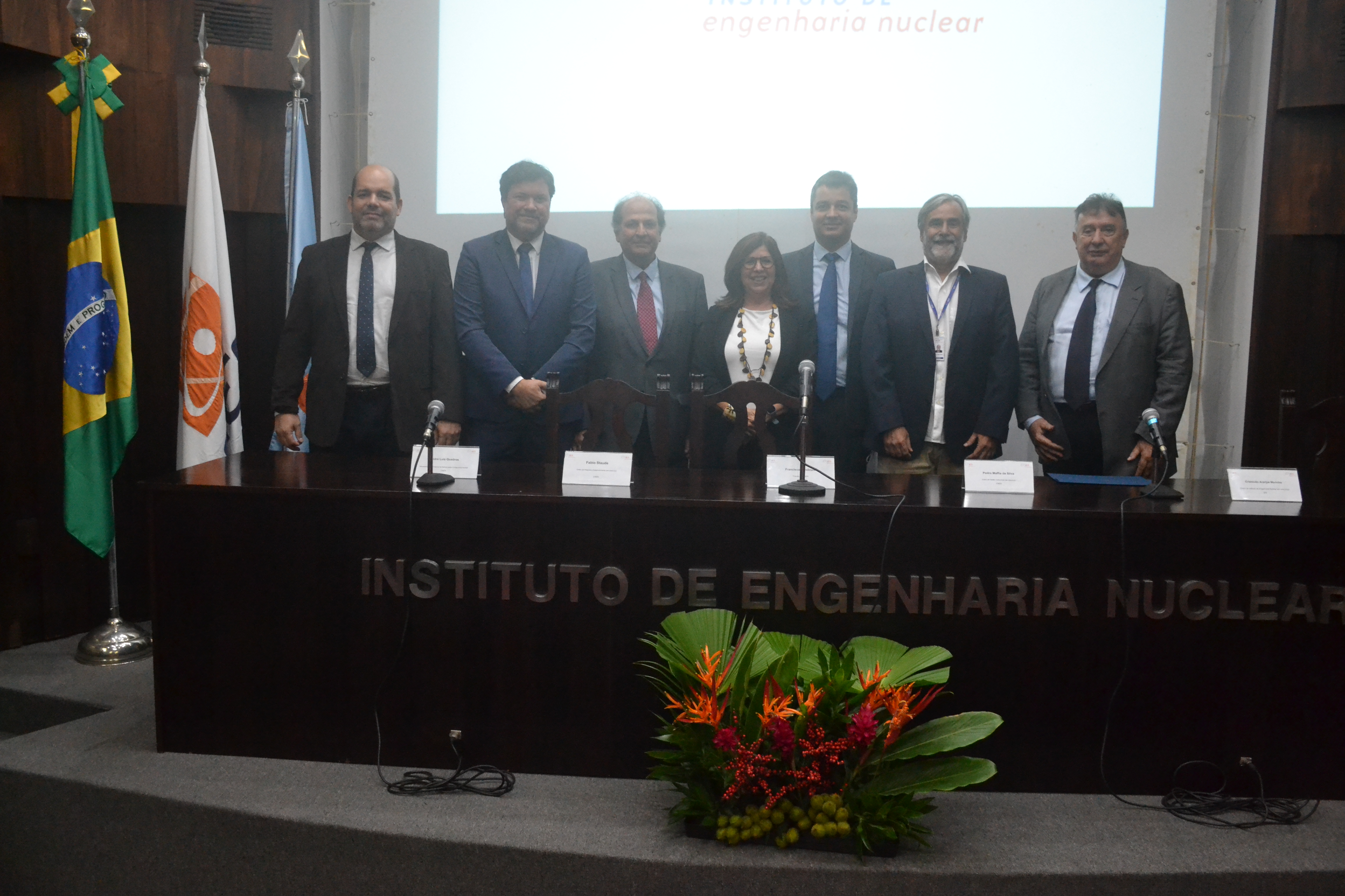 Estiveram presentes Maria Angélica Vergara Wasserman (Diretora do Instituto de Radioproteção e Dosimetria) e Walter Mendes