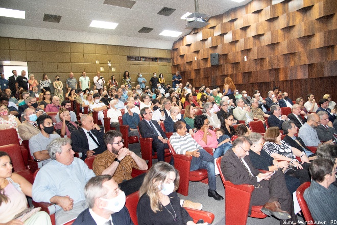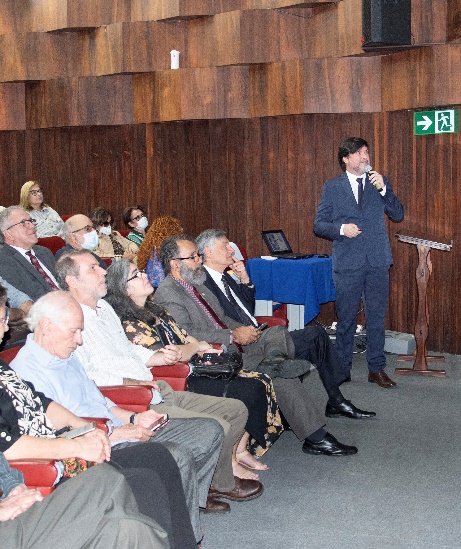 Próximo a falar, o diretor de P&D destacou o atual papel do IEN, “um hub acolhedor de instituições com muitas possibilidades de entregas à sociedade.” Já o presidente da CNEN observou que o auditório lotado de servidores, colaboradores e representantes de centros de pesquisa e de ensino demonstra a importância do trabalho do IEN: “Mesmo com restrições de pessoal e recursos, o IEN se reposicionou com ideias, criatividade e empenho.” O ministro de Ciência, Tecnologia e Inovações, Paulo Alvim, enviou mensagem de vídeo.