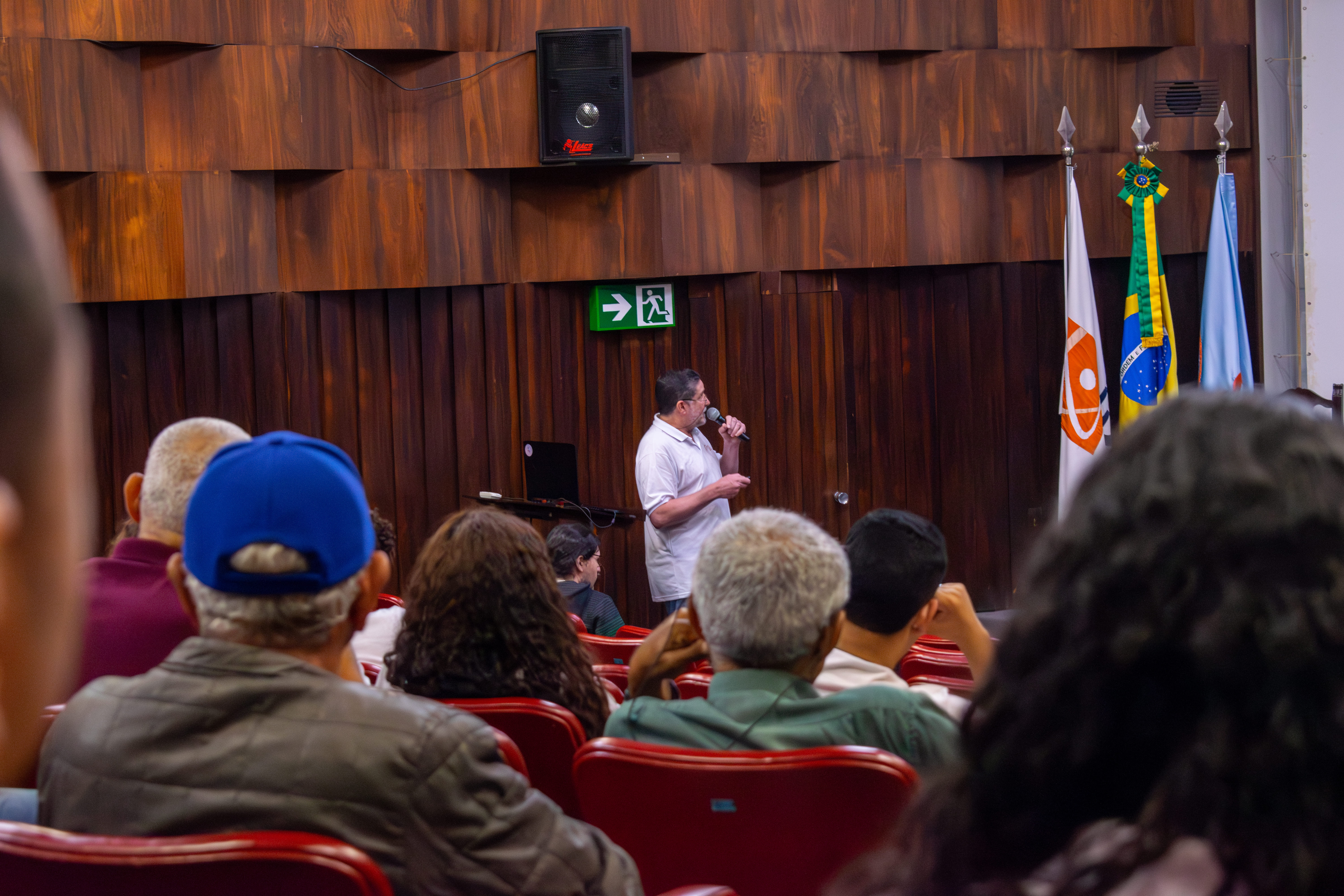 - Professor Eugênio Marins ministrando sua palestra para o público do IEN Portas Abertas. Autor: Gledson Júnior.