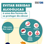 Evitar bebidas alcoólicas é uma das formas de se proteger do câncerInfográfico sobre porquê evitar bebidas alcoólicas é uma das formas de se proteger do câncer. | |