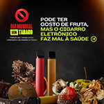 Pode ter gosto de fruta, mas o cigarro eletrônico faz mal à saúde.Peça-mãe da campanha do Dia Mundial sem Tabaco 2024 com o tema Proteger as crianças da interferência da indústria do tabaco | |