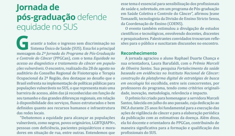 Tema: “Equidade no acesso ao diagnóstico e tratamento do câncer em populações vulneráveis”