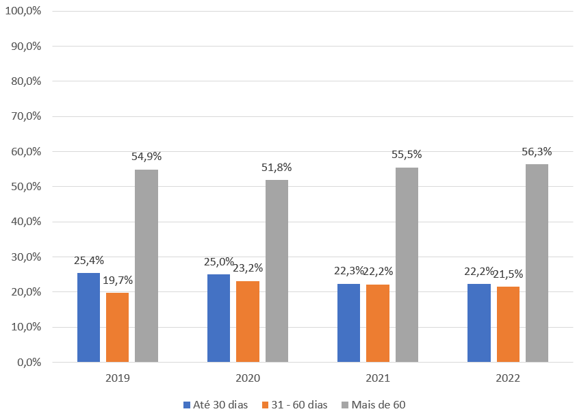Entre os anos de 2019 a 2022, a proporção de casos de câncer de mama tratados após 60 dias diminuiu. Contudo, a proporção de casos tratados em até 30 dias praticamente não se alterou (Figura 1).