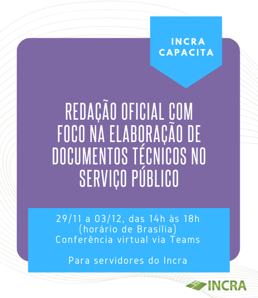 Descrição: o curso tem como objetivo capacitar o participante para a adequada recepção, ou seja, leitura (interpretação de um texto na condição de receptor ou destinatário) e, principalmente, para a adequada elaboração, isto é, redação (produção de um texto na condição de emissor ou remetente) de textos técnicos em geral, notadamente dos seguintes documentos: Notas Técnicas, Notas Informativas, Relatórios e Pareceres.