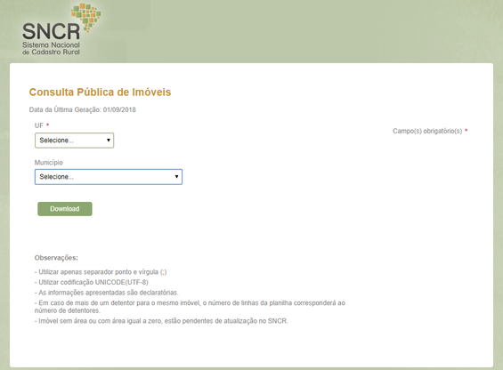 Consulte os dados da estrutura fundiária extraídos do Sistema Nacional de Cadastro Rural (SNCR)
