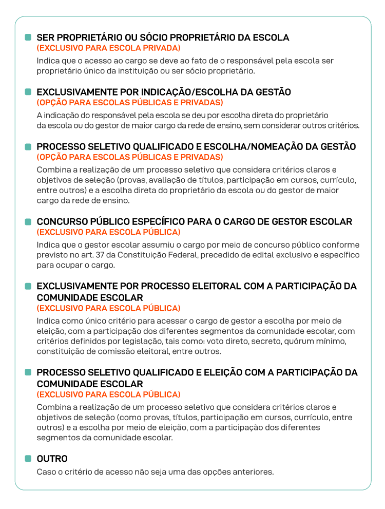 Entenda as formas de acesso ao cargo de direção nas escolas (veja o quadro):