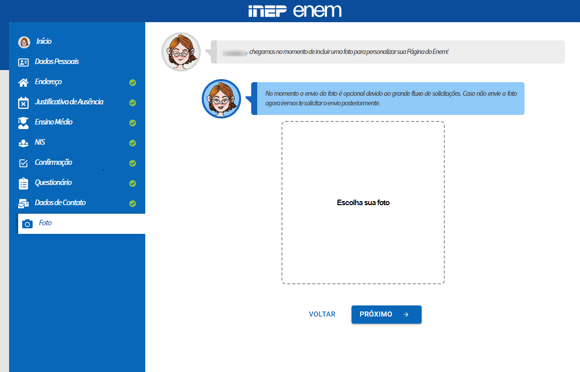 11. Envie uma foto para personalizar sua Página do Participante do Enem.