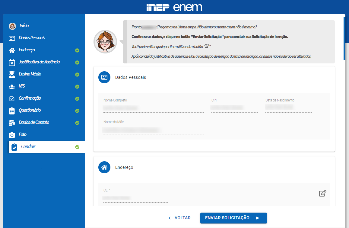 12. Para finalizar, confira as informações, descendo a barra de rolagem da tela, e clique em “Enviar solicitação”.