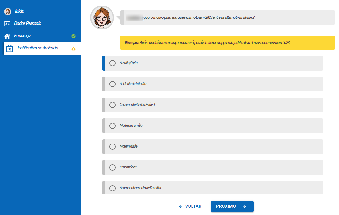 7. Se o participante não compareceu aos dois dias de Enem 2023, deverá justificar a ausência. É necessário informar o motivo da ausência e enviar a documentação exigida.