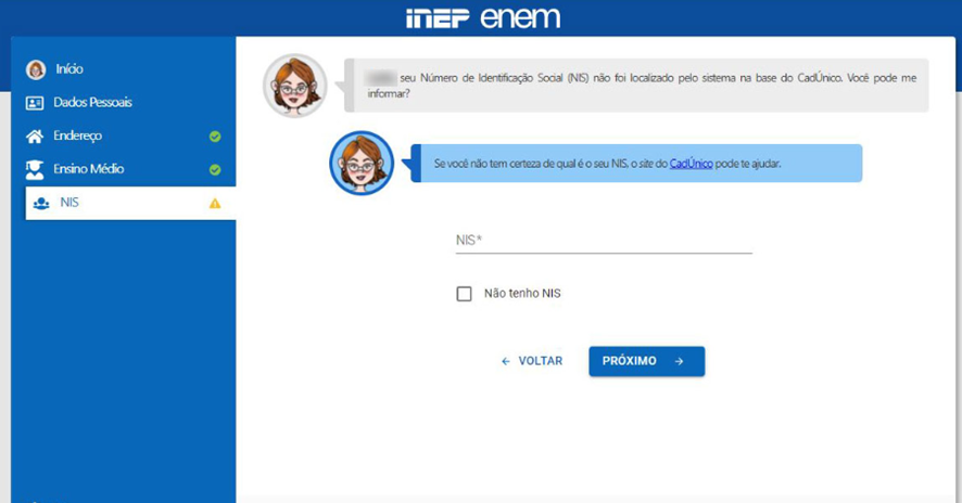 9. O participante que possuir o Número de Identificação Social (NIS) deve informá-lo e clicar em “Próximo”. Caso não seja cadastrado no NIS, basta selecionar a opção “Não tenho NIS”. Em seguida, responda ao Questionário Socioeconômico. Ao todo, são 23 perguntas.
