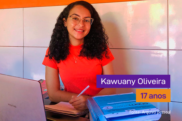 Moradora do município de Esperantina (PI), Kawuany Oliveira, 17 anos, fez o Enem no ano de 2021 e, atualmente, cursa o terceiro semestre de pedagogia. “Era o curso que eu sempre quis e com o qual eu mais me identifico. Eu sempre tive vontade de ser professora, de ensinar”, contou a jovem, que além de estudar, dá aulas de reforço para crianças do 1º ano ao 9º ano do ensino fundamental.