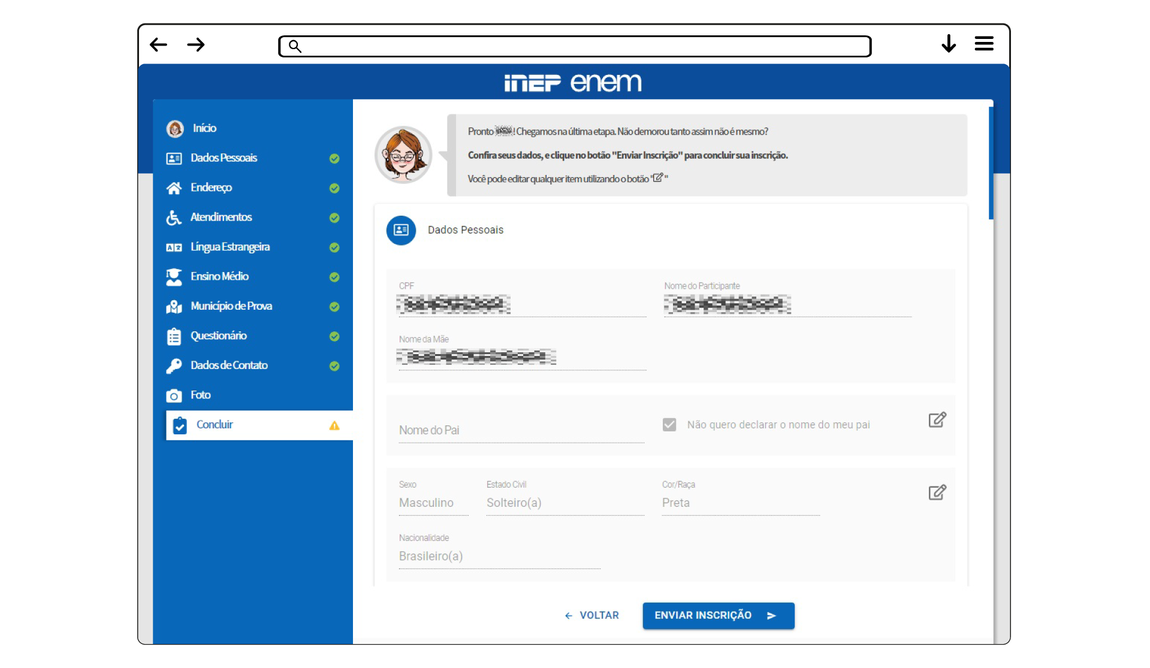 Por fim, ao terminar de informar os dados necessários, clique em “Enviar Inscrição”.