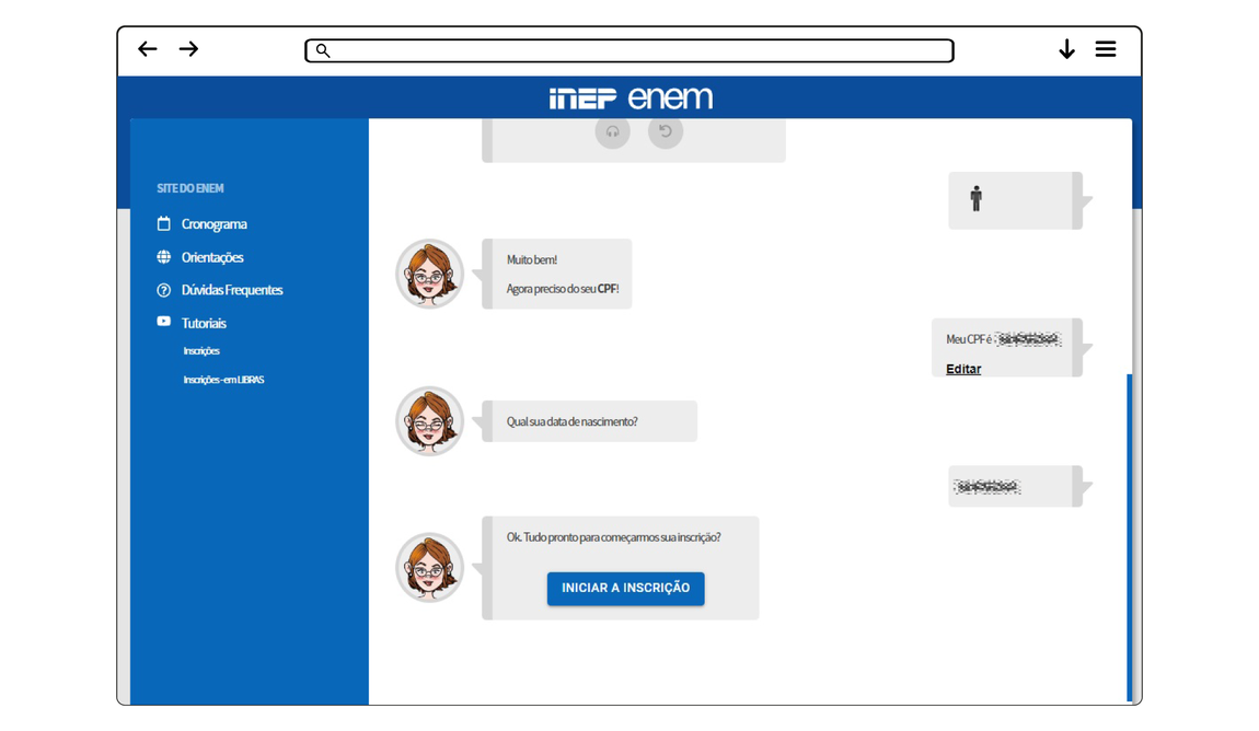 3 - Em seguida, insira o número do CPF, a data de nascimento (iguais aos cadastrados na Receita Federal) e clique em “Iniciar a inscrição”.