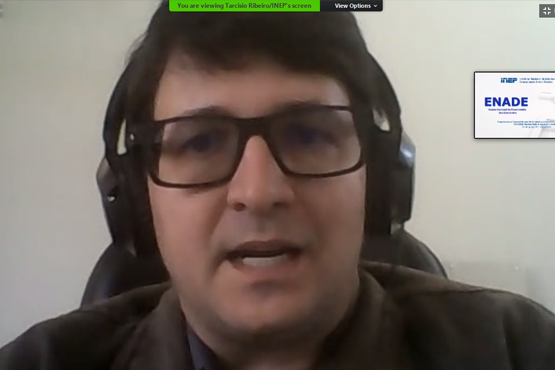 Tarcísio Ribeiro, coordenador-geral do Enade, durante apresentação do exame aos participantes / Reprodução Zoom