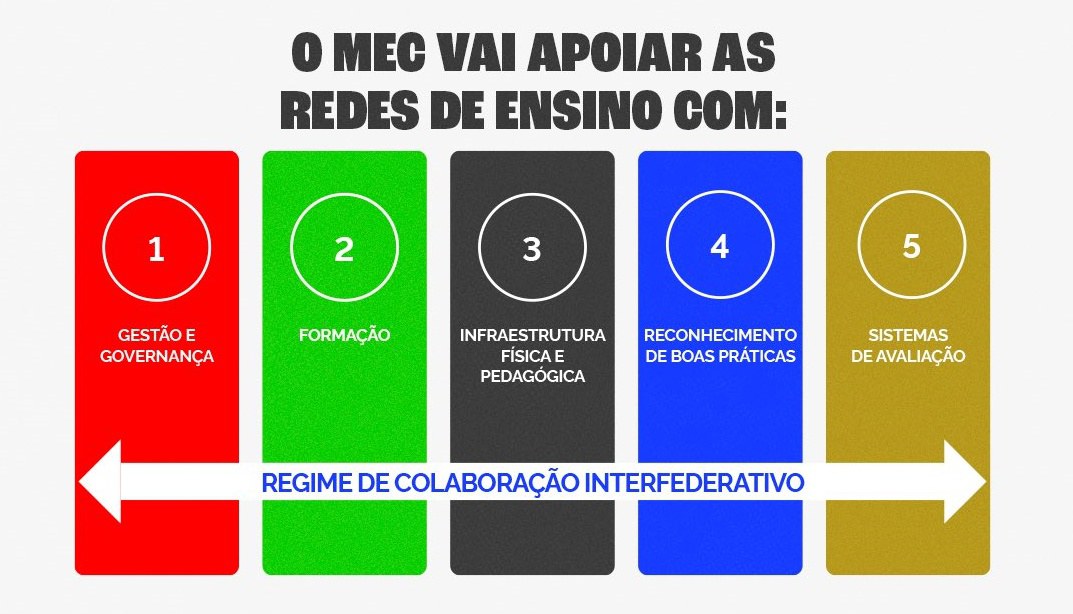 “O MEC lançará mão de diferentes estratégias, tendo como fio condutor o regime de colaboração entre estados e municípios. Esse regime não suprime ou invalida a autonomia dos entes federados, mas fortalece suas capacidades. O Compromisso reconhece as diversidades territoriais do Brasil e não propõe uma resposta única: cada estado, em colaboração com municípios, elaborará a sua própria política territorial, de maneira a dar conta de suas especificidades”, explica Camilo Santana.