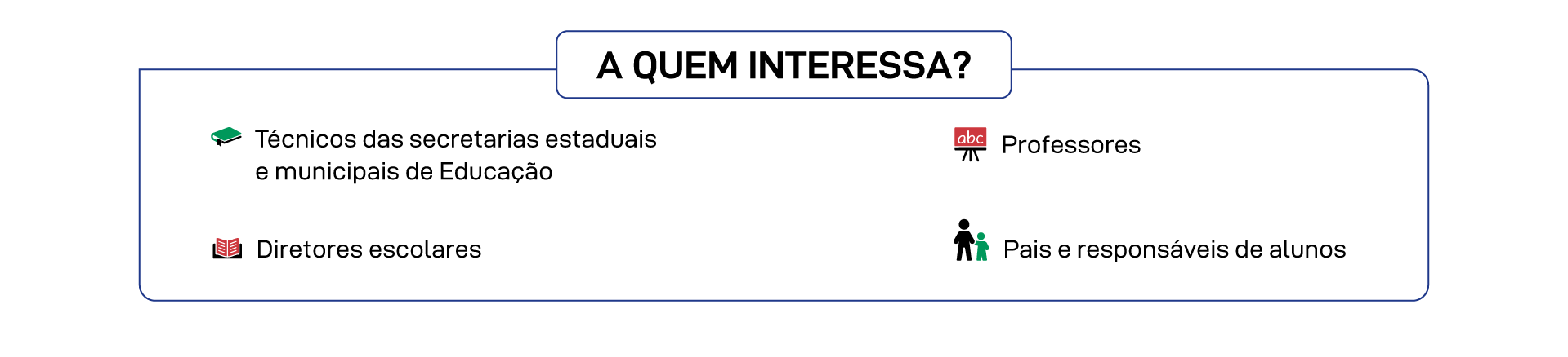 Entre outros aspectos, também possibilita a compreensão sobre as condições de acesso à escola e de permanência nela, além de avaliar quão eficiente é o ensino. Por meio de testes e questionários, a avaliação reflete os níveis de aprendizagem demonstrados pelo conjunto de estudantes no contexto escolar.