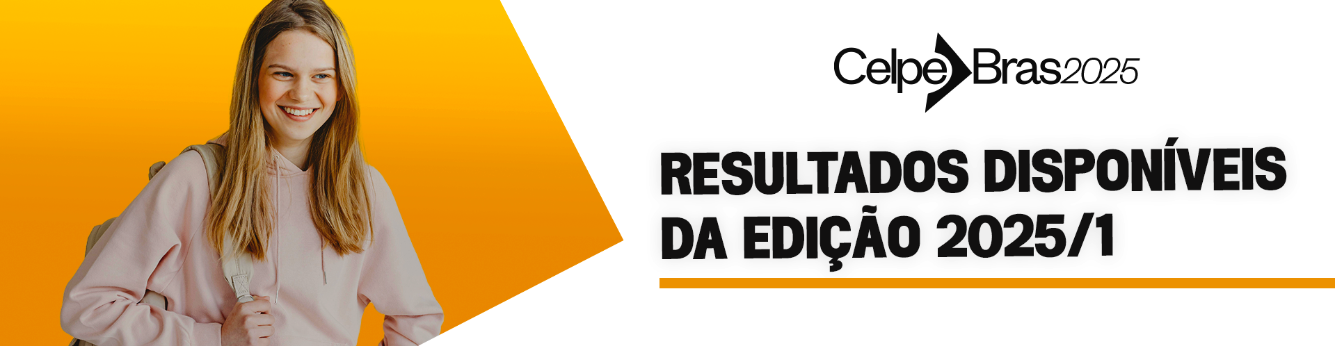 Jovem sorridente com mochila. Texto: Celpe-Bras 2025 – Resultados disponíveis da edição 2025/1.