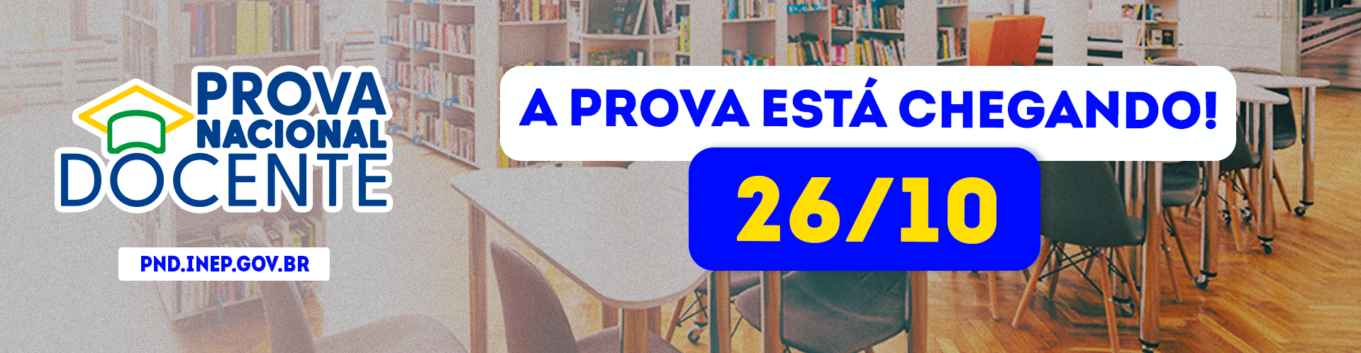 Banner da Prova Nacional Docente com o texto “A prova está chegando! 26/10